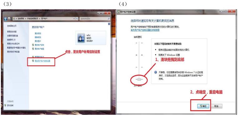 关闭 Windows 7 UAC 的方法如下图: