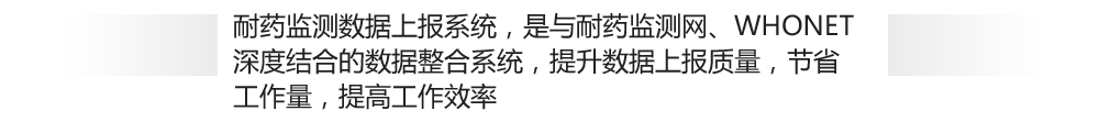 系统内置WHONET代码和耐药监测上报平台规则;用户可根据上报业务需求灵活选择上报条件,自动生成上报数据文件