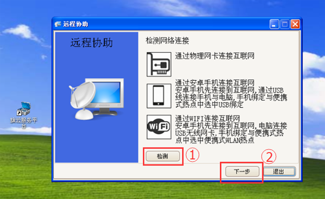 第一步:从电脑桌面,通过旗云服务平台,进入到远程协助。