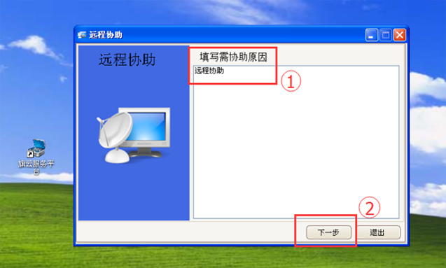 第三步:填写申请远程协助的原因,然后点击下一步操作。